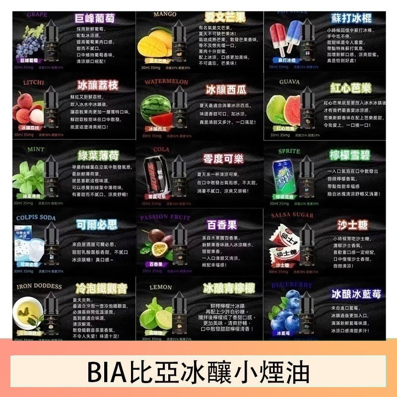 紅心芭樂, 檸檬雪碧, 可爾必思, 蘇打冰棍, 巨峰葡萄, 愛文芒果, 百香果, 冷泡鐵觀音, 荔枝, 沙士, 可樂, 西瓜, 青檸檬, 藍莓, 薄荷